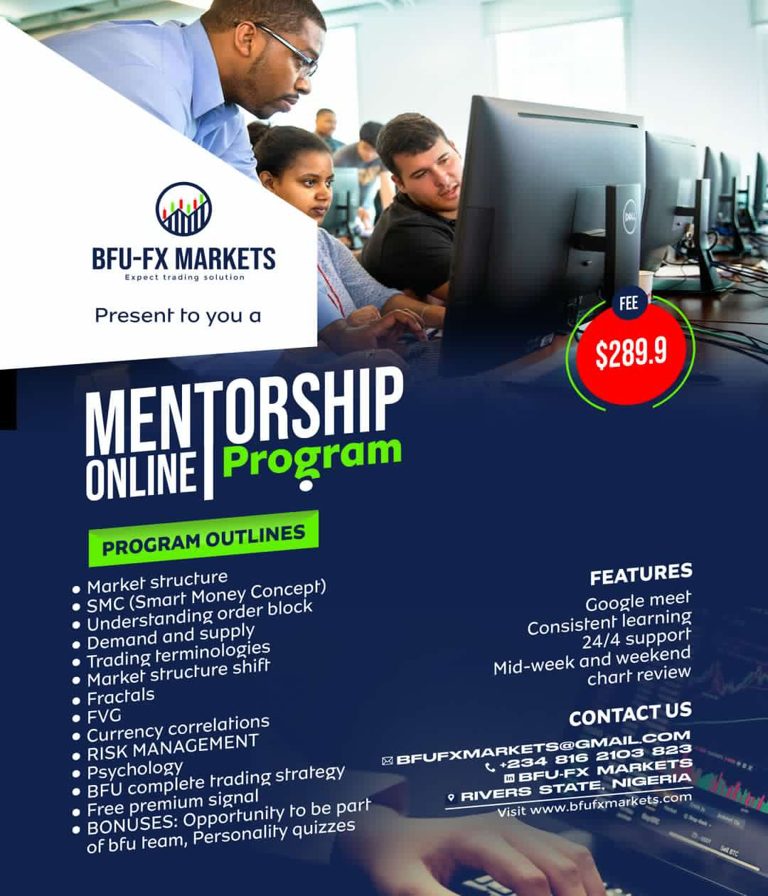 We provide customized theoretical training together with a full year of rigorously supervised practice. Students that do well are offered the chance to trade for consumers and earn a substantial profit margin. We hold your hands and guide you step-by-step through the process of trading the financial markets. BONUS: You get to join BFU-FX team of traders